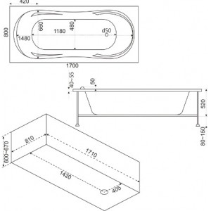 | Размеры (ДхШхВ): | 170х80х52 см |