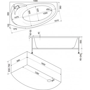 Ванна акриловая BAS Камея-PRO 160 правая (с каркасом)