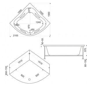 | Форма: | четверть круга, угловая конструкция |