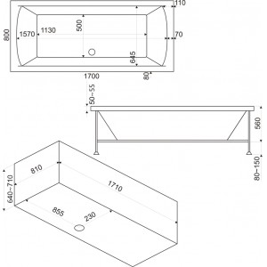 Ванна BAS Индика 170x80 без гидромассажа