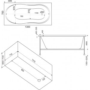 Ванна BAS Лима 130х70 без гидромассажа