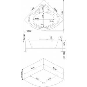 Фронтальный экран для ванны BAS Риола 1350х1350