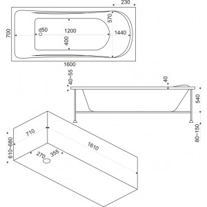 Достоинства: Отличная ванная! Дешево взяла и нее ожидала найти ванную с прочным каркасом и таким толстым листом акрила, плюс еще толстый армирующий слой, это смола с ниткой вроде! Не прогибается, и устойчивая! У муж у меня, на минуточку, весит 100кг Недостатки: Узковата! Если захотите посидеть вдвоем, то не получится! Точнее получится с трудом у маленьких и худых)