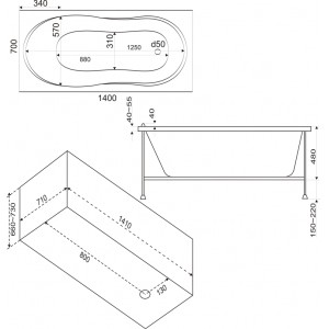 Ванна BAS Тесса 140х70 без гидромассажа
